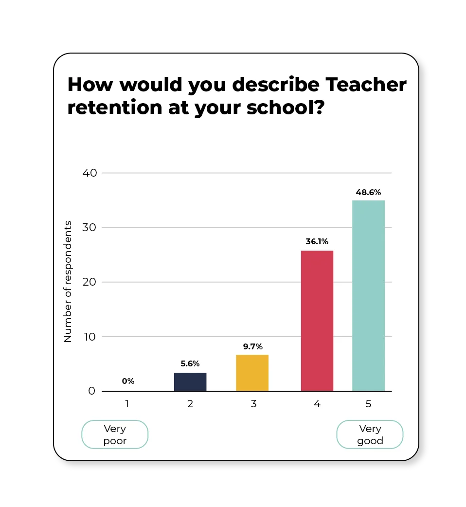 When it comes to recruitment and retention, most Headteachers report strong Teacher retention, with 84.7% rating it as ‘good’ or ‘very good’.